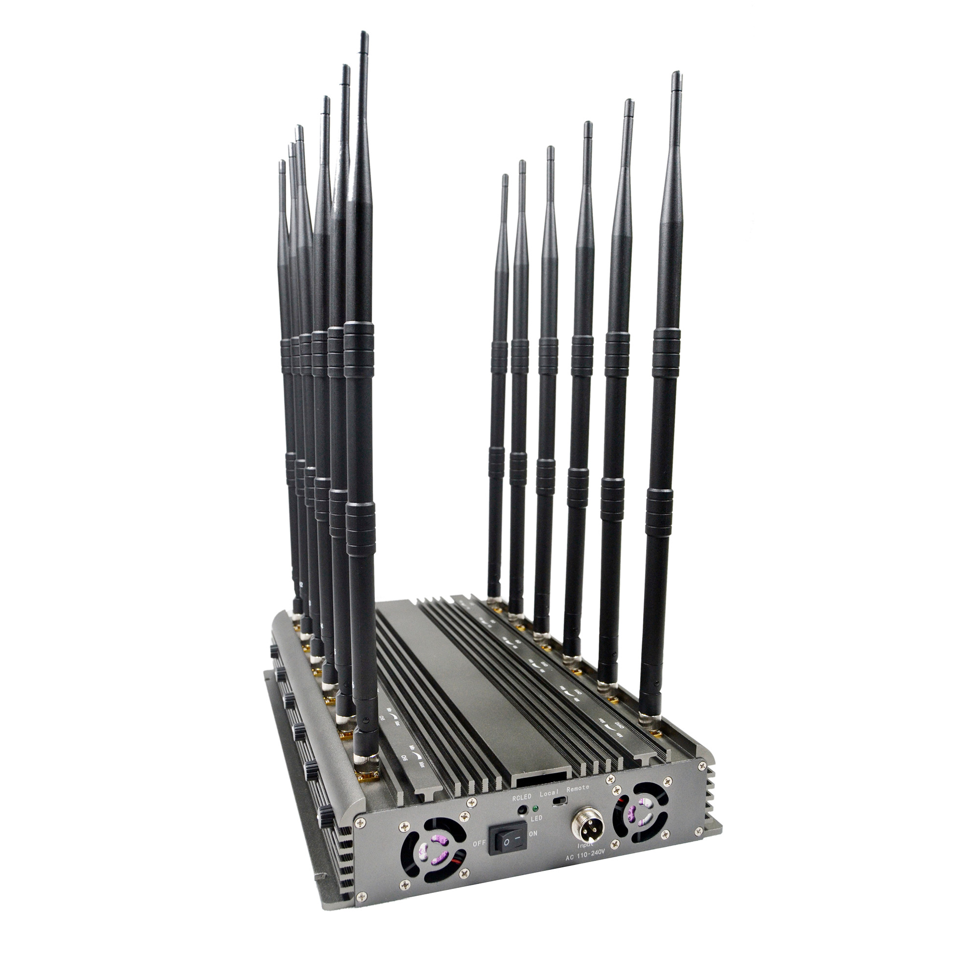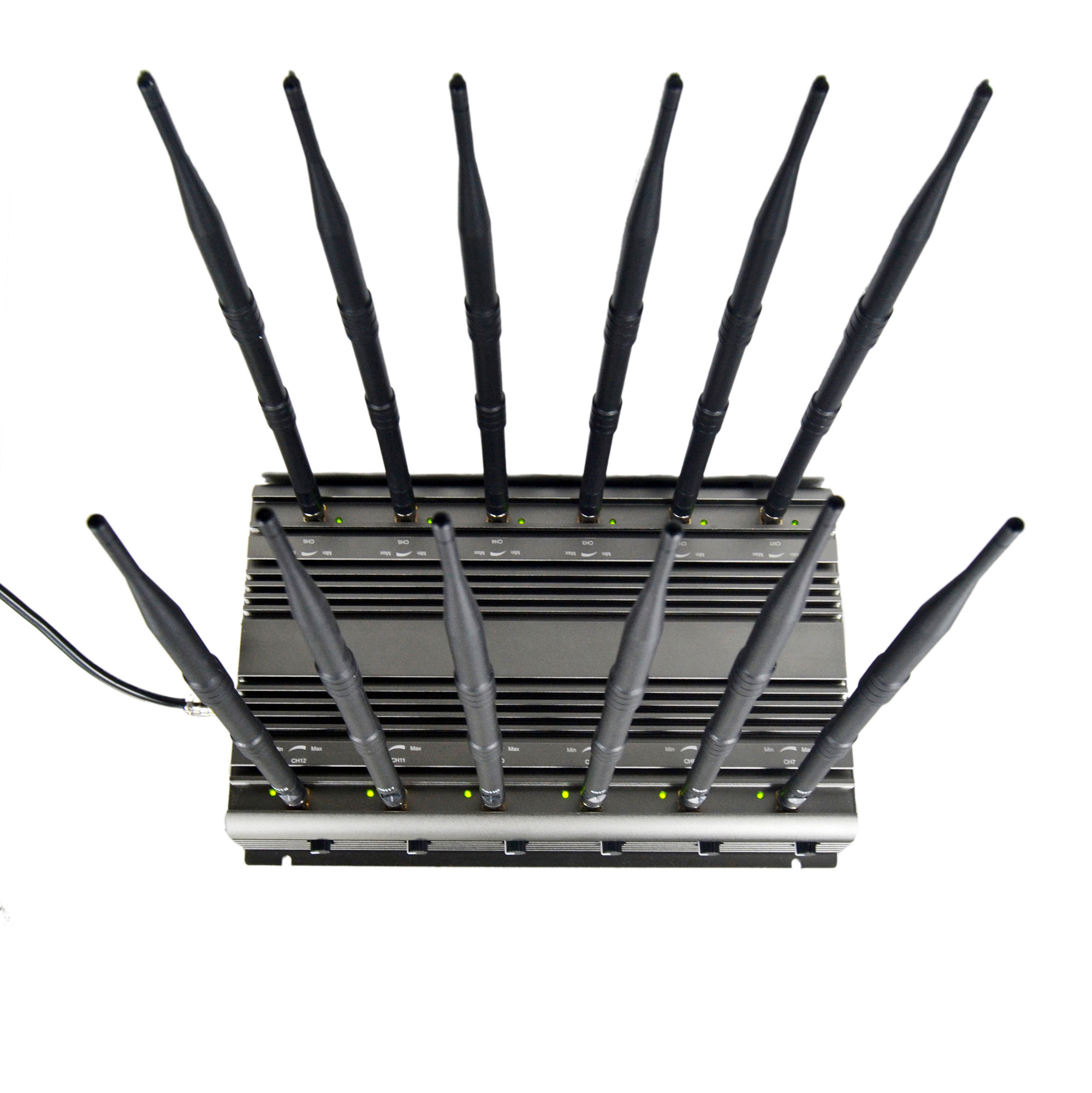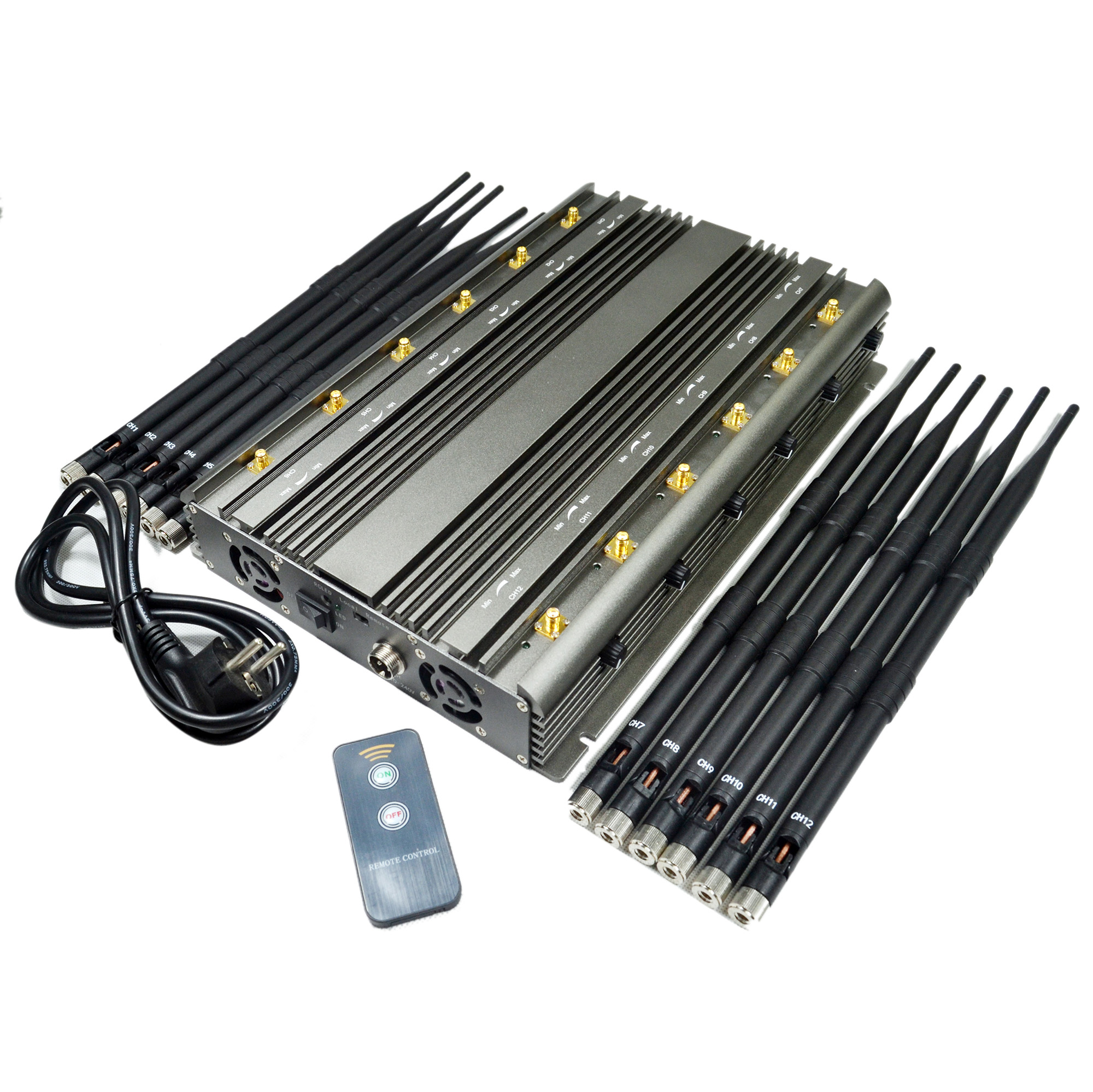 Nuevo y potente inhibidor de señales de teléfono móvil, WiFi, GPS, LOJACK, UHF, VHF con 12 antenas para uso en interiores, potencia de salida ajustable de 63W, alcance de hasta 60m